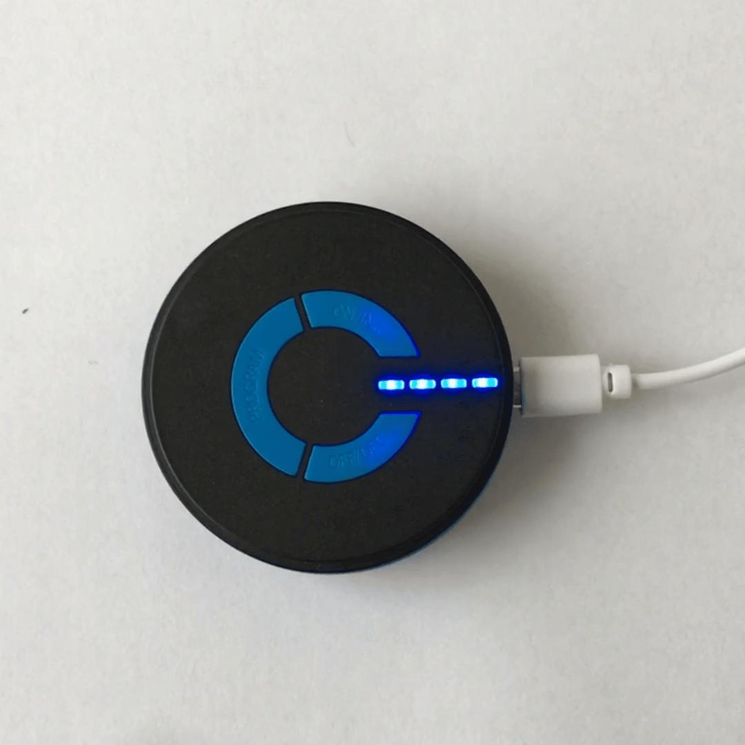 Charge the device (2-hour charge provides weeks of use). When fully charged the blue light will turn off.